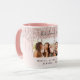 An elegant, girly and glam mug. Pink glitter drip, paint dripping look. A chic blush pink gradient background. Personalise and add your own photo, selfie of your best friends and your names. The text: Best Friends Forever is written with a modern hand lettered style script. Black text. Perfect as a gift for yourself or as a birthday or Christmas gift for your friends.