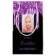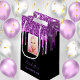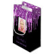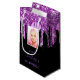 A gift bag for a girly and glamourous 21st (or any age) birthday. A black background with purple and pink faux gold glitter drips, paint dripping look. The text: The name is written with a modern purple hand lettered style script. Tempate for a date and age 21. Personalise and add your own photo of the birthday girl. Can be used both for gift wrapping or as a party favour bag.