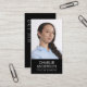 Vertical, black business cards with you photo, name and title/company name on the front and contact information on the back. You can move and change the size of the photo with the design tool.