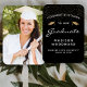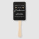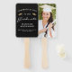 Help your graduation guests keep cool during the ceremony or party with these custom photo graduation hand fans, featuring the words "Congratulations to our Graduate" in white text on a black background. The word "Graduate" appears in a graceful handwriting-style script. A pair of gold faux glitter mortar board caps and a scattering of gold confetti decorate the top portion of the label. Personalise one side with your grad's name, school, and year of graduation. Easily replace the sample image on the other side with a photo of your grad.