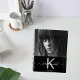A chic black background. Personalise and add your own photo, a name, monogram letter and a year. The name is written in white with a large modern hand lettered style script with swashes. The monogram letter in grey. Perfect for school, work or organising your personal/family life. To keep the swashes only delete the sample name, leave the spaces or emoji's in front and after the name