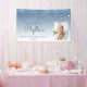 Welcome guests with this chic, glamourous 80th birthday party photo banner, featuring a sparkly blue faux glitter drip border and blue ombre background. Easily replace the sample image with a photo of the guest of honour. Personalise it with her name in blue handwriting script, with the birthday and date below in blue sans serif font.