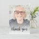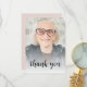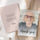 The front of this 90th birthday invitation features the guest of honour's photo with the words "thank you" in elegant black calligraphy script overlay. A white screen helps make the text pop. Customise the reverse side with your personal message in black sans serif font and your name in script on a blush pink background.