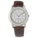 The watch looks really great! Very sharp and well done. The leather band is really nice, though for a man's watch I think it should be longer. Unfortunately, it isn't big enough for my husband's wrist but I will get a replacement because he is very excited to wear it!