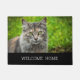 Welcome home to your cat and family! Add your own photo of your cat or kitten. With the text: Welcome Home. White text. Black background.