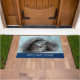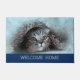 Welcome home to your cat and family! Add your own photo of your cat or kitten. With the text: Welcome Home. White text. Navy blue background.