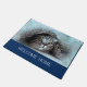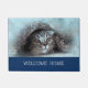 Welcome home to your cat and family! Add your own photo of your cat or kitten. With the text: Welcome Home. White text. Navy blue background.