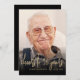 The front of this 90th birthday party invitation features the guest of honour's photo with a gold-coloured text overlay. The words "cheers to 90 years" appear in modern gold-coloured handwriting script, followed by the guest of honour's name and birthday in sans serif font. A dark screen helps make the text pop. Customise the reverse side with the name and party details in gold on a black background. A great way to celebrate someone who's turning ninety!
