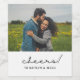 Celebrate your engagement with these elegant and custom photo wine labels. Add your favourite photo of you and your significant other and customise the text to make it unique to your engagement party. The minimalist script font saying "cheers" adds the perfect touch of sophistication.