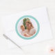 Custom Photo Christmas Snowball Frame Mint Classic Round Sticker