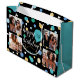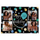 Create a stylish photo collage gift bag! Personalise the template with four favourite photos, the recipient's name, and birthday age. A fun design featuring round confetti, balloons, and "Happy Birthday" in a trendy script. Perfect for family, kids, friends, and pets! Printed colours: teal green, blue, black, white and gold.