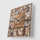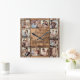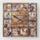 Custom Photo Collage Family Rustic Wooden Barrel Square Wall Clock