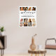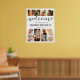 Elegant graduation welcome poster sign featuring a simple white background that can be changed to any colour, a 11 photo collage of the graduate, the word "welcome" in a calligraphy script font, their name, and the class year.