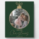 Display cherished holiday memories with this personalised free-standing photo plaque, designed by The Arty Apples. The front features a festive bauble frame for your favourite photo with editable text—perfect for “Merry Christmas”, a family name, or a heartfelt message for grandparents, parents, or loved ones near and far.