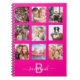 Custom photo collage monogram hot pink diary notebook