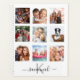 Make your own unique family photo collage as a gift or for yourself. Use four, 9 of your favourite photos of your family, friends, dream travel destination or pet! Personalise and add a name and your monogram letter. The name is written with a modern hand lettered style script with swashes. Black and grey text. A modern, chic white background. To keep the swashes only delete the sample name, leave the spaces or emoji's in front and after the name.