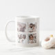 Create your own personalised 8 photo collage, coffee mug with your custom images on a simple modern beige background. The coffee mug face also features your monogram and name. Add your favourite photos, designs or artworks to create something really unique.