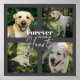 This custom pet memorial poster in a muted grey commemorates the life and love of a beloved dog, cat or other pet. Featuring a sweet labrador and the well known phrase, "Forever in our hearts" in the centre, and surrounded by a photo collage of memories from your pet's life. Customise with your own pet photos. You can add up to four different photographs for a wonderful keepsake of the good times. This would make a thoughtful gift for any devoted dog owner who has suffered pet loss.