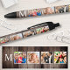 Create your own personalised 4 photo collage pen with your custom images on a rustic dark brown farmhouse style wooden plank background. The design also features your monogram. Add your favourite photos, designs or artworks to create something really unique.