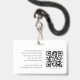 Elegant ID badge with a profile photo and company logo. This editable template can be personalized with a name, job title, contact details, website, and a scannable QR code. A stylish design featuring simple, modern typography and a minimalist aesthetic. This professional badge is suitable for workplace identification, security, networking, conferences, and any role requiring visible ID. It offers fully customizable text to fit your business brand and is ideal for a wide range of professions, including Creative Professionals, Content Creators, Beauty Industry Professionals, Business Consultants, Entrepreneurs, Small Business Owners, and many others. Printed colors: black, white and dark gray, or customize the color with the design tool.