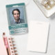 These photo ID badges for employees in the tech industry have a teal-and-silver theme. They include your employee's photo, name, and job title on the front, plus the name of the corporation / company and business logo. The back includes room for "if found" information (including address and phone number), plus space for an ID number and a bar code. The design also includes a circuit board pattern background. Use the easy template to personalise, and then use the design tool to make more detailed changes (such as adjusting the size of the logo or barcode or deleting and rearranging elements). This eye-catching design is perfect for an IT specialist, network administrator, systems analyst, computer programmer, software developer, cybersecurity expert, or any high tech business person.