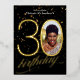 Custom Photo Confetti Black Gold 30th Birthday Foil Invitation Postcard