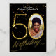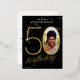 Custom Photo Confetti Black Gold 50th Birthday Foil Invitation Postcard