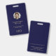 Enhance your corporate security with our Custom Photo Corporate Logo Staff Identification Badge. Featuring a customisable employee photo, name, and title on the front, along with your logo, this badge exudes professionalism and functionality. The back offers space for company name and address if lost or found, or personalised text, providing comprehensive identification for your staff. With a sleek navy blue background and golden classic typography, this badge offers a modern, minimalist design suitable for any business environment. Elevate your corporate branding and security measures with our customisable ID badge solution.