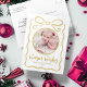 *NON GOLD NON FOIL* Send warm wishes in style with this charming Custom Circle Photo Holiday Christmas Postcard! Featuring your favourite photo framed in a cute, circle adorned with a festive hand-drawn gold beige ribbon, this design is perfect for spreading holiday cheer. The delightful clean fresh white and beige gold tones create a cosy, whimsical feel, while the customisable fonts and colours make it easy to tailor the card to your unique style. The back offers space for your heartfelt Christmas or New Year’s message, making this postcard a personal and memorable way to connect with loved ones. Easily customise yours online today!