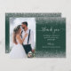 Custom Photo Dark Green Silver Glitter Wedding Thank You Card