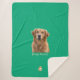 This soft, high-quality blanket features your dog's cherished photo and name, creating a personalized, tangible tribute. The cheerful vibrant green exterior fleece provides a comforting aesthetic, while the plush white Sherpa interior is incredibly cozy.