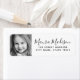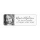 Elegant return address labels featuring your custom photo and template fields for name and address. Name or family name in an elegant calligraphy script font. Make sure that the photo covers the bleed area if you are not using a square photo.