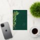 Create elegant emerald green and gold save-the-date cards decorated with a eucalyptus foliage. This design is perfect for a jewel tone wedding. Templates make it easy to type names, date and place, website, initials, and upload your photo.