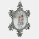 Custom Photo First Christmas Engaged Black Script Snowflake Pewter Christmas Ornament