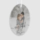Commemorate your engagement with this beautiful modern keepsake ornament. The grey text reads "Our first Christmas engaged," with the word "engaged" in elegant handwriting script with flourishes before and after. Replace the sample image with your favourite photo, and add your names and the year. A white gradient filter helps make the text pop.