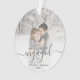 Custom Photo First Christmas Engaged Grey Script Ornament