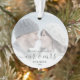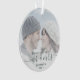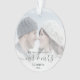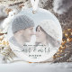 Commemorate the first Christmas of your marriage with this beautiful modern keepsake ornament. The dark pine green text reads "Our first Christmas as Mr & Mrs," with the words "Mr & Mrs" in elegant handwriting script with flourishes before and after. Replace the sample image with your favourite photo, and add your last name and the year. A white gradient filter helps make the text pop.