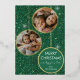Custom Photo Green Glitter Merry Christmas Foil Holiday Card.Celebrate the season with our "Merry Christmas" holiday card, featuring a custom photo design. This festive card showcases a vibrant green background adorned with sparkling glitter accents, adding a touch of magic to your holiday greetings. Personalise it with your favourite family photo to create a memorable keepsake that will shine brightly on any mantle.