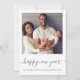 Custom Photo Happy New Year Grey Script Minimalist Holiday Card