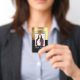 Template metallic gold and black ID badge with photo, title and name. For self employed or small business people for events and other business activities. Modern and eye catching. Simply add your own professional photo. yOU MAY ADD A LANYARD, CLIP, OR RETRACTABLE ATTACHMENT. See your attachment choices to the right.