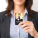 Template metallic gold and black ID badge with photo, title and name. For self employed or small business people for events and other business activities. Modern and eye catching. Simply add your own professional photo. yOU MAY ADD A LANYARD, CLIP, OR RETRACTABLE ATTACHMENT. See your attachment choices to the right.