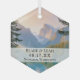 Commemorate a special event or gift a meaningful keepsake with this customisable ornament. Featuring a beautiful mountain and lake landscape, this ornament allows you to add names, date, and location in a stylish font overlay. Perfect as a wedding memento, holiday decoration, or gift, it captures the serenity of nature and the warmth of personal details, making it a cherished addition to any collection.