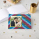 Guest book with a tiled striped pattern that matches the two flamingos at dusk that is on the back of the book. The front features a photo of the happy couple, which can be replaced with a real photo of the couple. Personalise this template with text information and photos.