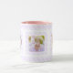 Custom Photo Lilac Purple Pink Pattern Mother’s Day Mum Mummy Tea Coffee Mug. In pretty colours of pastel lilac purple and pink; in a feminine, modern, geometric pattern. For cooling spring and summer drinks. Change the three photos to your own pictures to celebrate joyful family memories. Buy as a budget friendly festive keepsake tableware gift for her, new mothers, wives or grandparents.