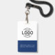 Custom Photo Logo Modern Stylish Navy Blue White ID Badge