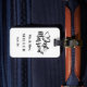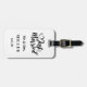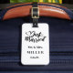 Custom photo luggage tag is shown with a Mr. & Mrs. Just Married text.