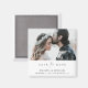 This simply chic photo wedding save the date magnet template features an elegant, minimalist, modern design. It features your first names, date and location under your favourite photo and a 'save the date' message in black conveyed with a striking blend of two distinct fonts, with 'the' in a light, flowing script between the rest of the message, which is in upper case with a bold, crisp formal look. The save the date element can't be altered, but you can, in addition to replacing our sample info with your own, delete text fields that you don't need, or change the wording, as well as change font, size and colour of the text. For example, you might choose to include your last names as well as first names, etc. The default text colour is black. Customise this elegant minimalist wedding save the date magnet template with your photo and your inspiration and make it uniquely yours! And check our selection for a variety of savethe date magnets, including this item with a border around the photo!