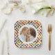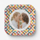 Custom Photo Modern Colourful Personalised Paper Party Plates features a colourful modern geometric pattern with your favourite photo in the centre. PHOTO TIP: centre your photo prior to uploading to Zazzle. Designed by Evco Studio www.zazzle.com/store/evcostudio