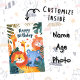 This is a cute Animals illustration art birthday card for monster lovers. Inside the card, you can customise it with a child's photo, name and age.