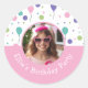 Custom Photo Name Balloon Confetti Birthday Party Classic Round Sticker